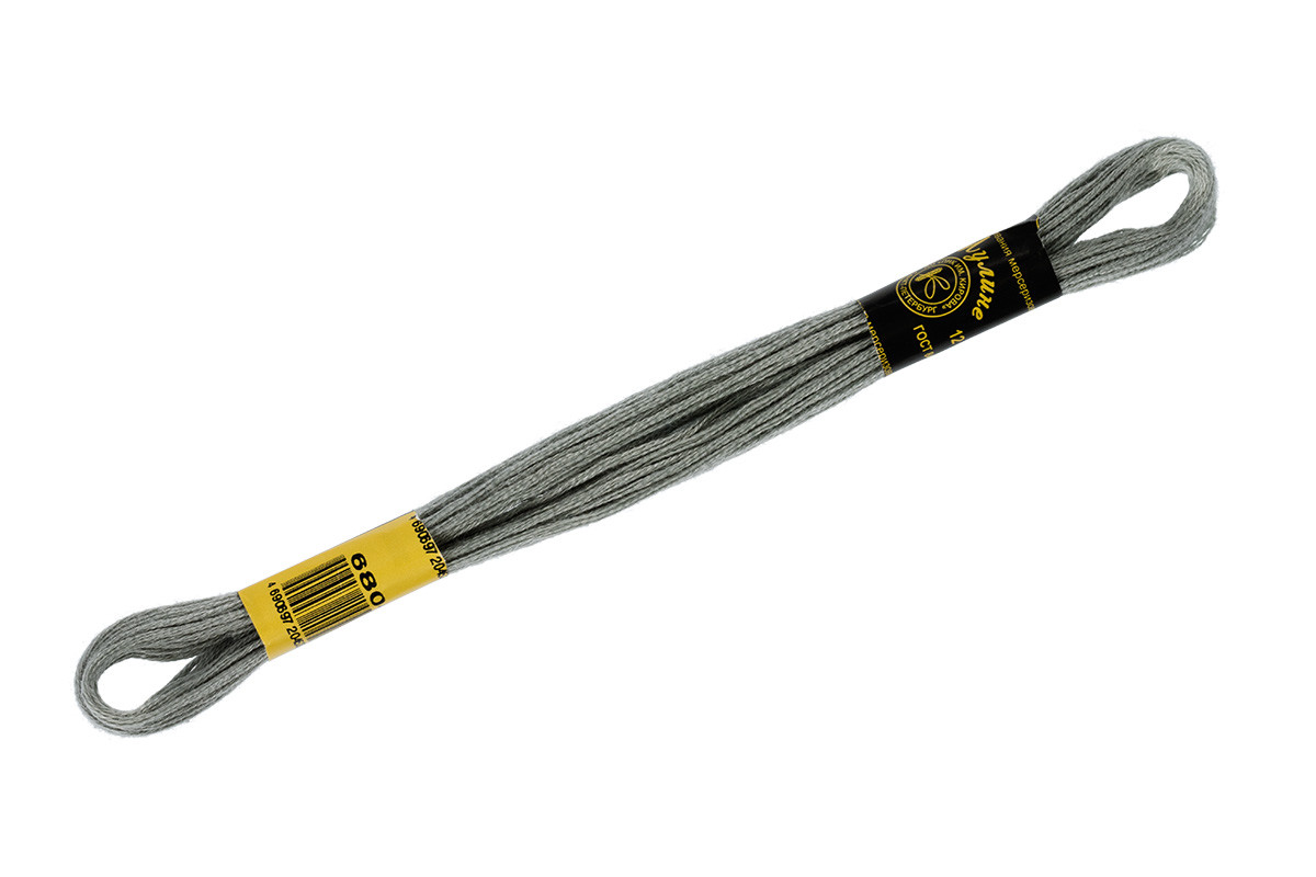 Нитки для вышивания " ПНК им. Кирова" мулине 100% мерсеризованный хлопок 8 м №6804 серый
