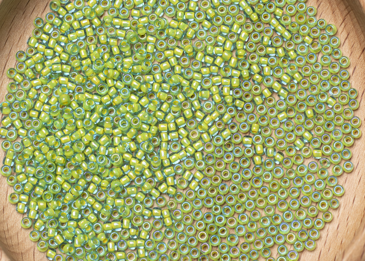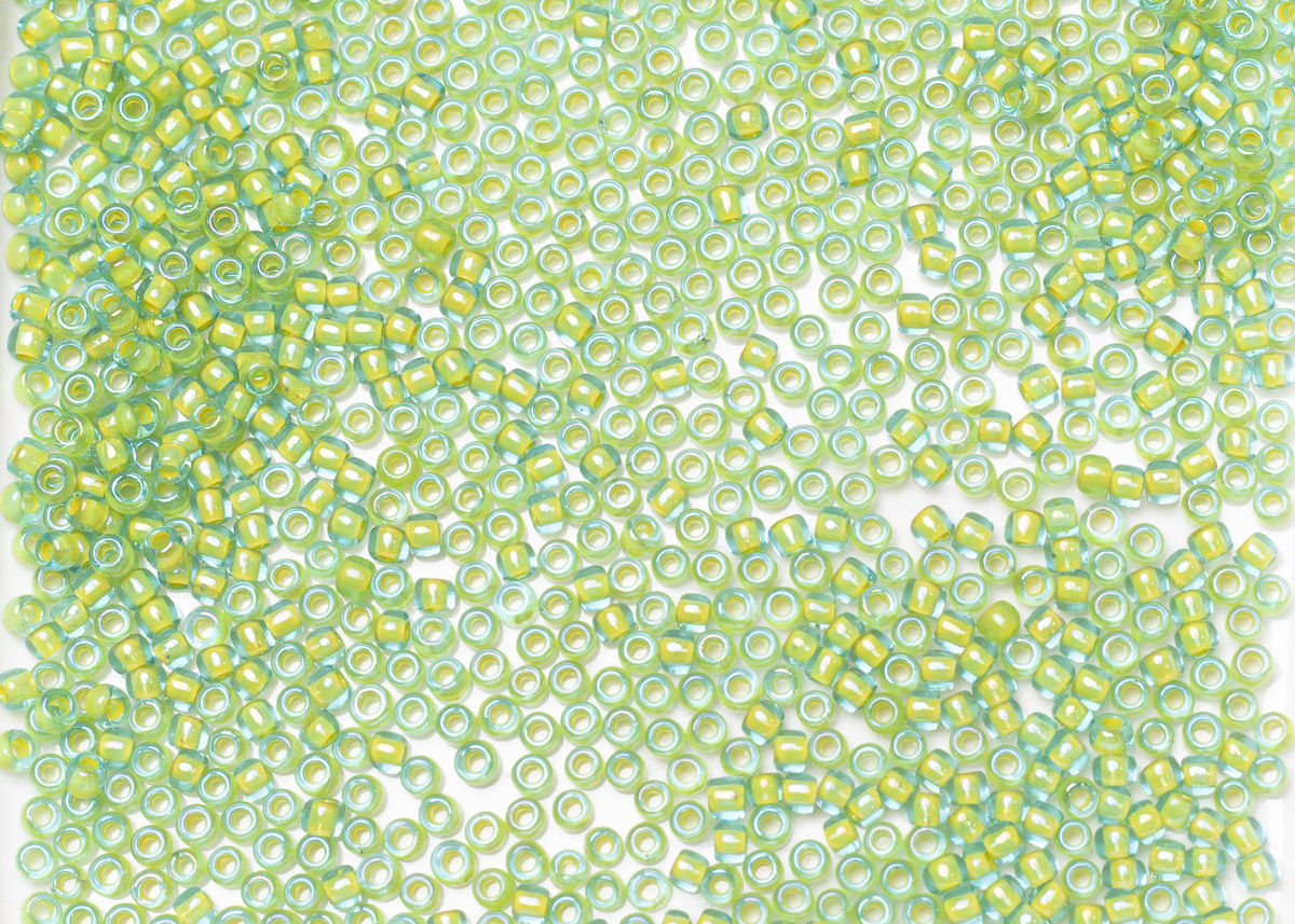 Бисер Япония круглый 11/0 10г 0307 морская вода/желтый, окрашенный изнутри