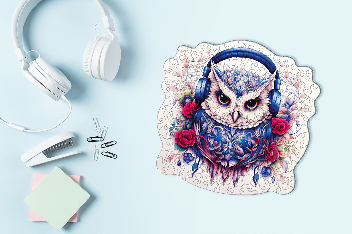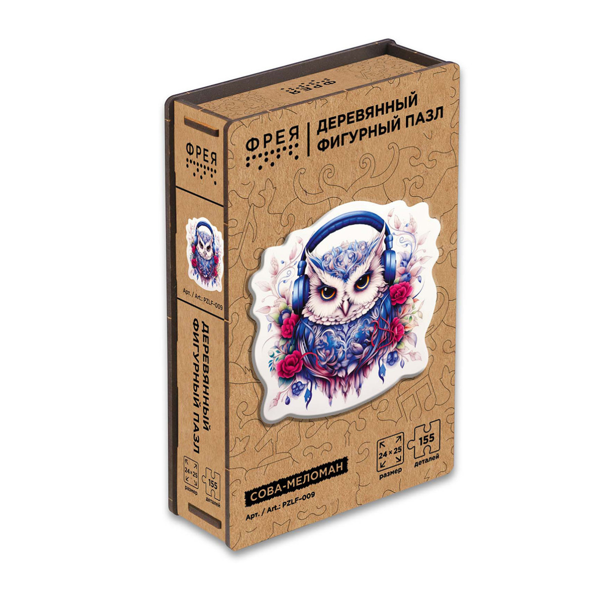 " ФРЕЯ" PZLF- 009 Пазл фигурный деревянный " Сова- меломан" 155 элемент.