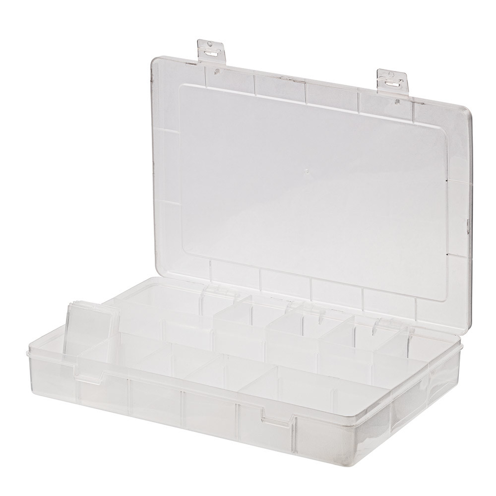 Коробка секционная прямоугольная с крышкой на защелке. Внутренние съемные перегородки могут формировать от 3 до 12 секций. Предназначается для хранения мелочей для рукоделия и шитья, а также канцелярских принадлежностей. Общий размер коробки 19. 9х13. 5х3. 8Сообщить о неточности в описании